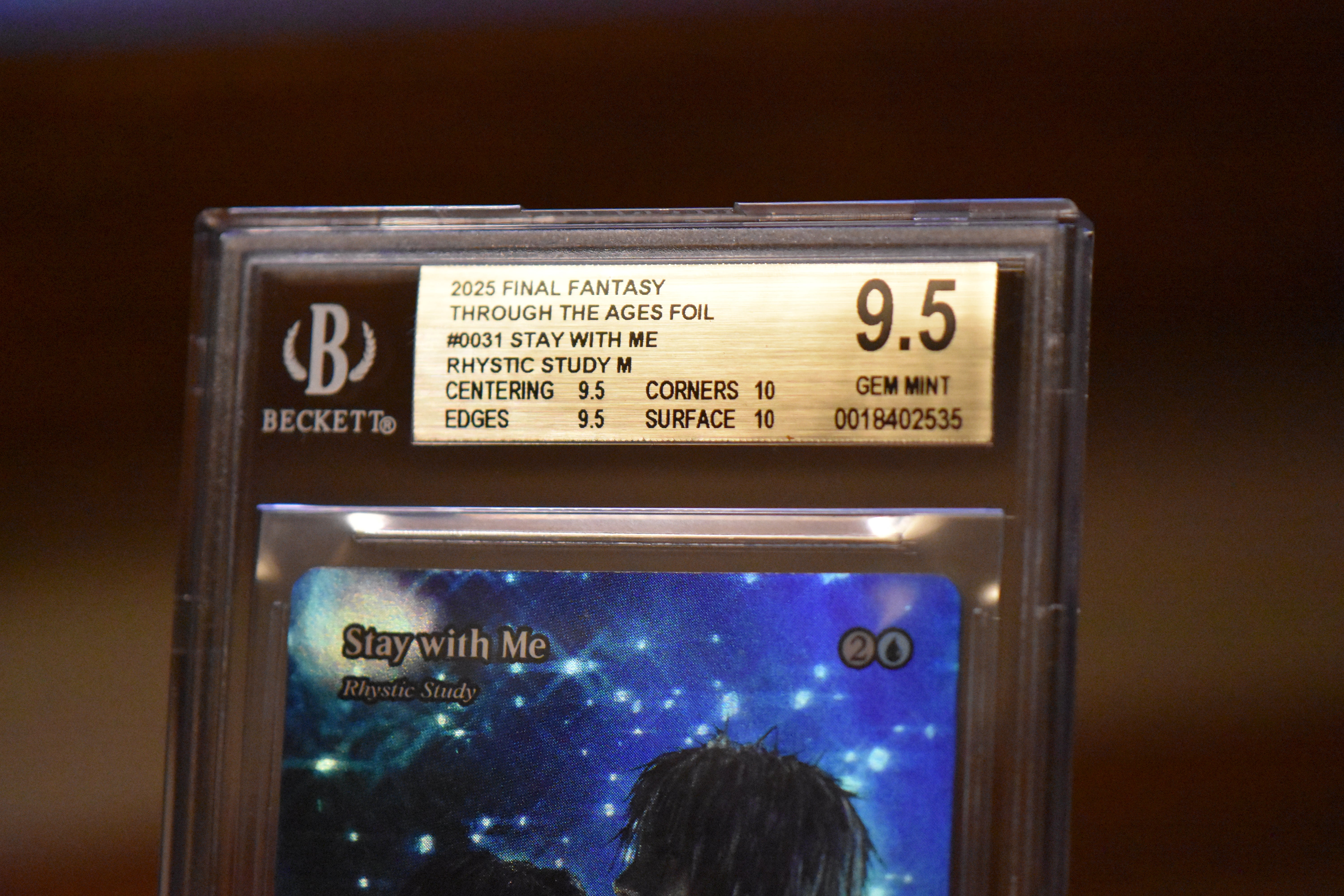 Graded by Beckett, the gold standard in grading collectible TCGs. Each card has an overall score as well as four subscores.
